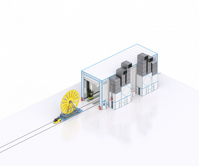 Окрасочно-сушильная камера проходного типа SPK-SCB-18.6.7 (далее — ОСК) предназначена для подготовки изделий к покраске, нанесения на них лакокрасочных покрытий и их сушки при повышенной температуре. В камере обеспечивается равномерный поток очищенного, подогретого воздуха. Направление потока воздуха